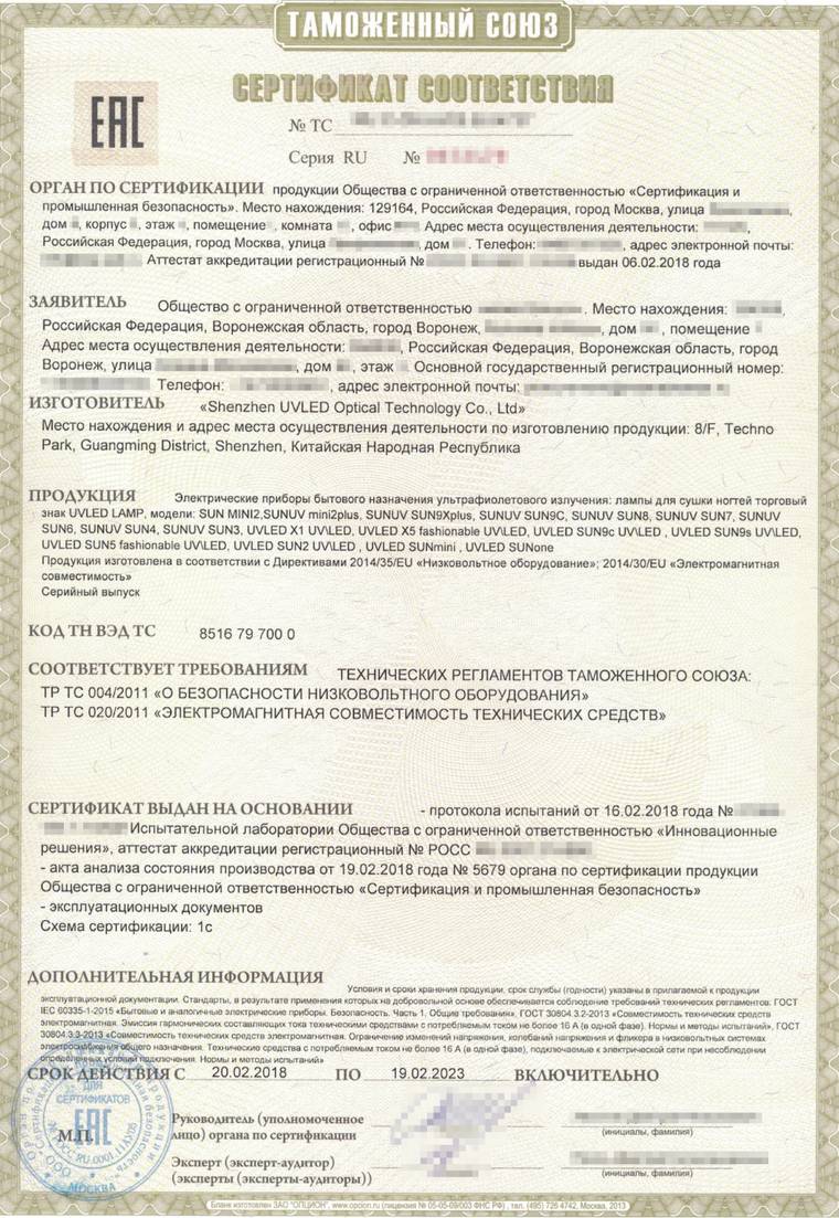 CU-TR合格证书(EAC)СЕРТИФИКАТ СООТВЕТСТВИЯ ТР ТС (ТР ЕАЭС)